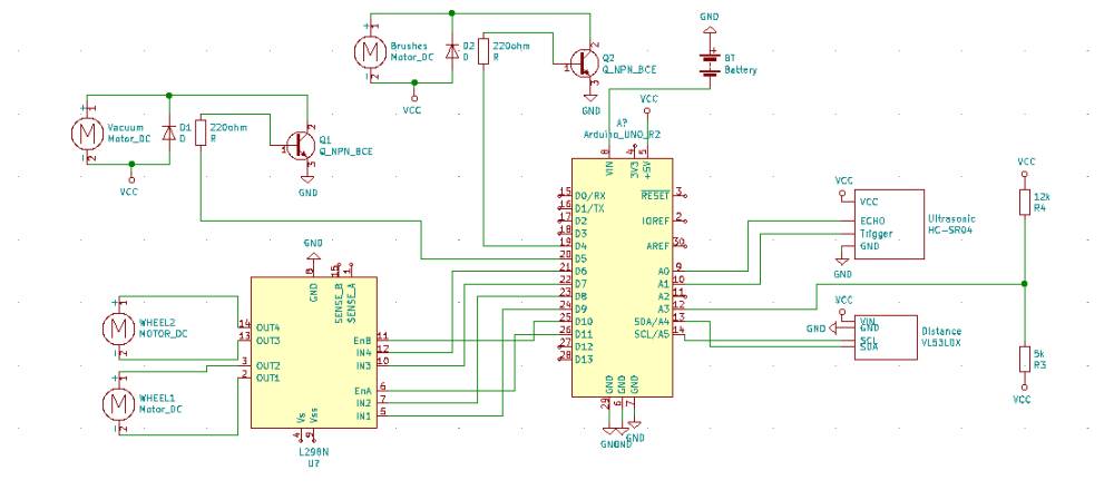 The robot brain, also needs to send the information to the brushes motors and the vacuum system motor to be working all the time.